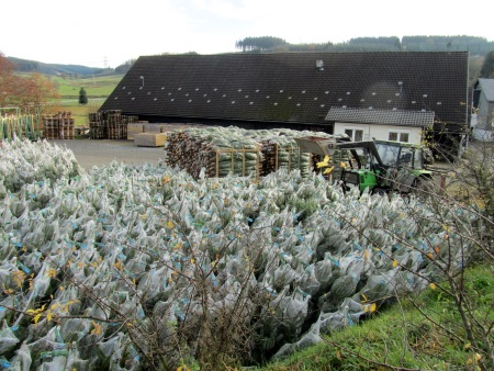 - Die Bäume werden durch uns stets frisch geschlagen, und ordentlich genetzt angeboten. Die Abholung erfolgt nach Terminabsprache auf unserem Verladeplatz in 57413 Finnentrop-Schliprüthen.
